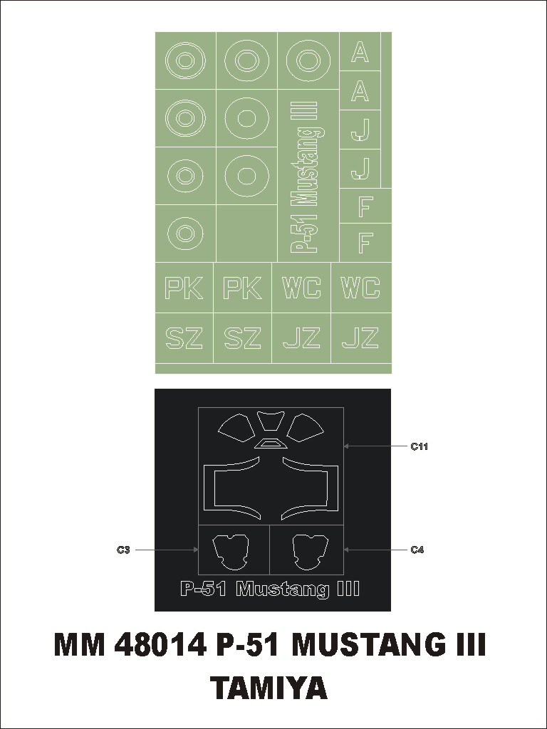 Szablony wg kalkomanii Techmod 48033H do modelu TAMIYA 61047 P-51 Mustang Mk.III.