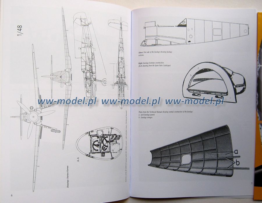 plany, kolorówka, zdjęcia detali, wnętrze kabiny, tablica przyrządów, kilka rysunków.
