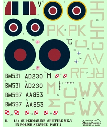 Model Maker D72134 Kalkomania Supermarine Spitfire Mk.V in Polish service part 2 1/72
