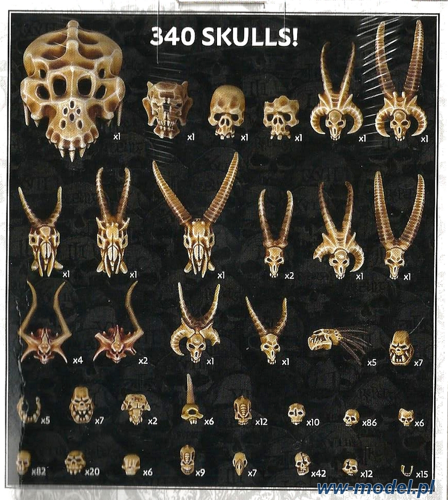 • 340 elementów: czaszki, żuchwy do plastikowych figurek