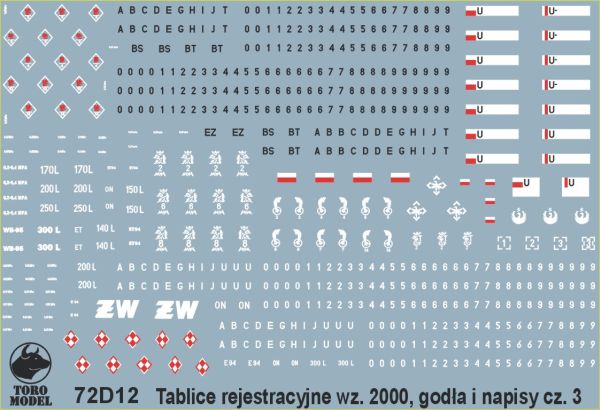 Toro Model 72D12 Kalkomania Tablice rejestracyjne pojazdów wz.2000 Wojska Polskiego cz.2