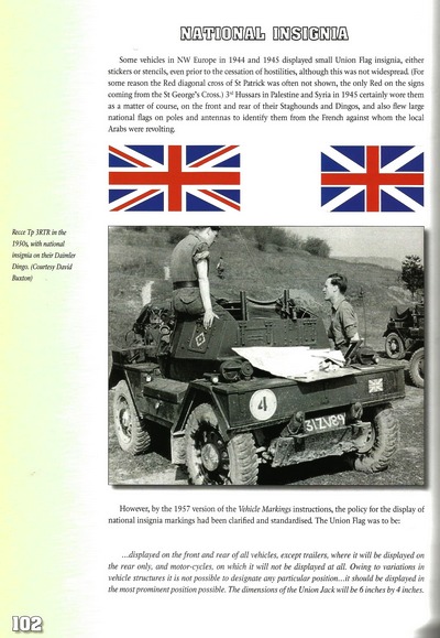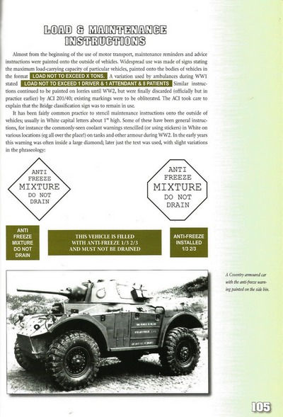 Książka opisuje zasady malowania i oznakowania brytyjskich pojazdów wojskowych po 2 wojnie światowej. Zawiera wykaz nazw własnych pojazdów od 1900 roku,